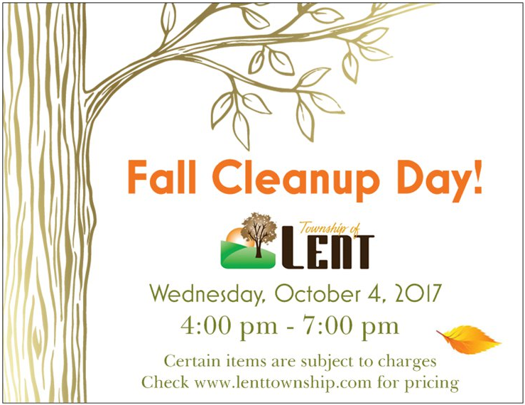 Appliances (No ammonia) $4.00 each Water Softeners $10 each Automobile/Truck Tires $1.00 each (rim $2.00) Semi Tire $8.00 (rim$9.00) Tractor Tire $25.00 Mattress or Box Spring $5.00 each Monitor $10.00 TV $10.00 – $20.00          Furniture $10.00 – $30.00                Bikes $2 – $3  EXACT cash or checks only. No early birds or garbage accepted!  This is for Lent Resident’s ONLY. Proof of Residency will be Required.