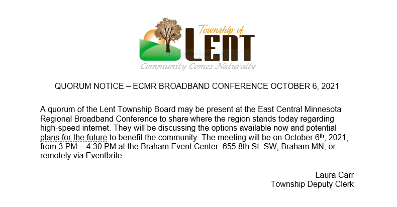 Potential Quorum Notice – East Central Minnesota Regional Broadband Conference