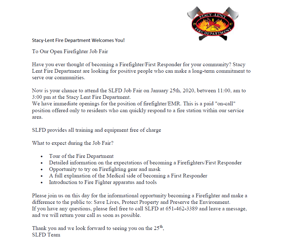 Calendar Add to Calendar Add to Timely Calendar Add to Google Add to Outlook Add to Apple Calendar Add to other calendar Export to XML When: January 25, 2020 all-day 2020-01-25T00:00:00-06:00 2020-01-26T00:00:00-06:00 SLFD Job Fair