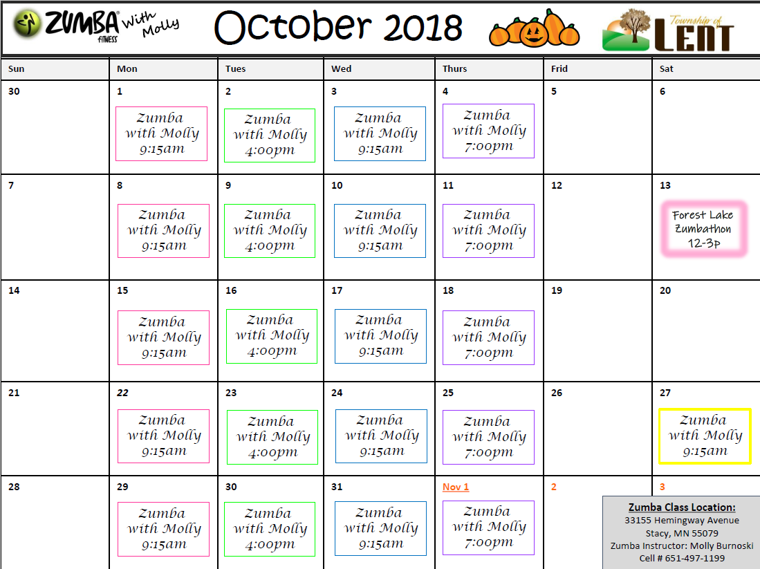 Calendar Add to Calendar Add to Timely Calendar Add to Google Add to Outlook Add to Apple Calendar Add to other calendar Export to XML When: October 25, 2018 @ 4:00 pm 2018-10-25T16:00:00-05:00 2018-10-25T16:15:00-05:00 Zumba with Molly