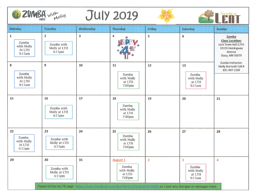 Calendar Add to Calendar Add to Timely Calendar Add to Google Add to Outlook Add to Apple Calendar Add to other calendar Export to XML When: July 2, 2019 @ 4:15 pm Repeats 2019-07-02T16:15:00-05:00 2019-07-02T16:30:00-05:00 Hall Rental Zumba with Molly